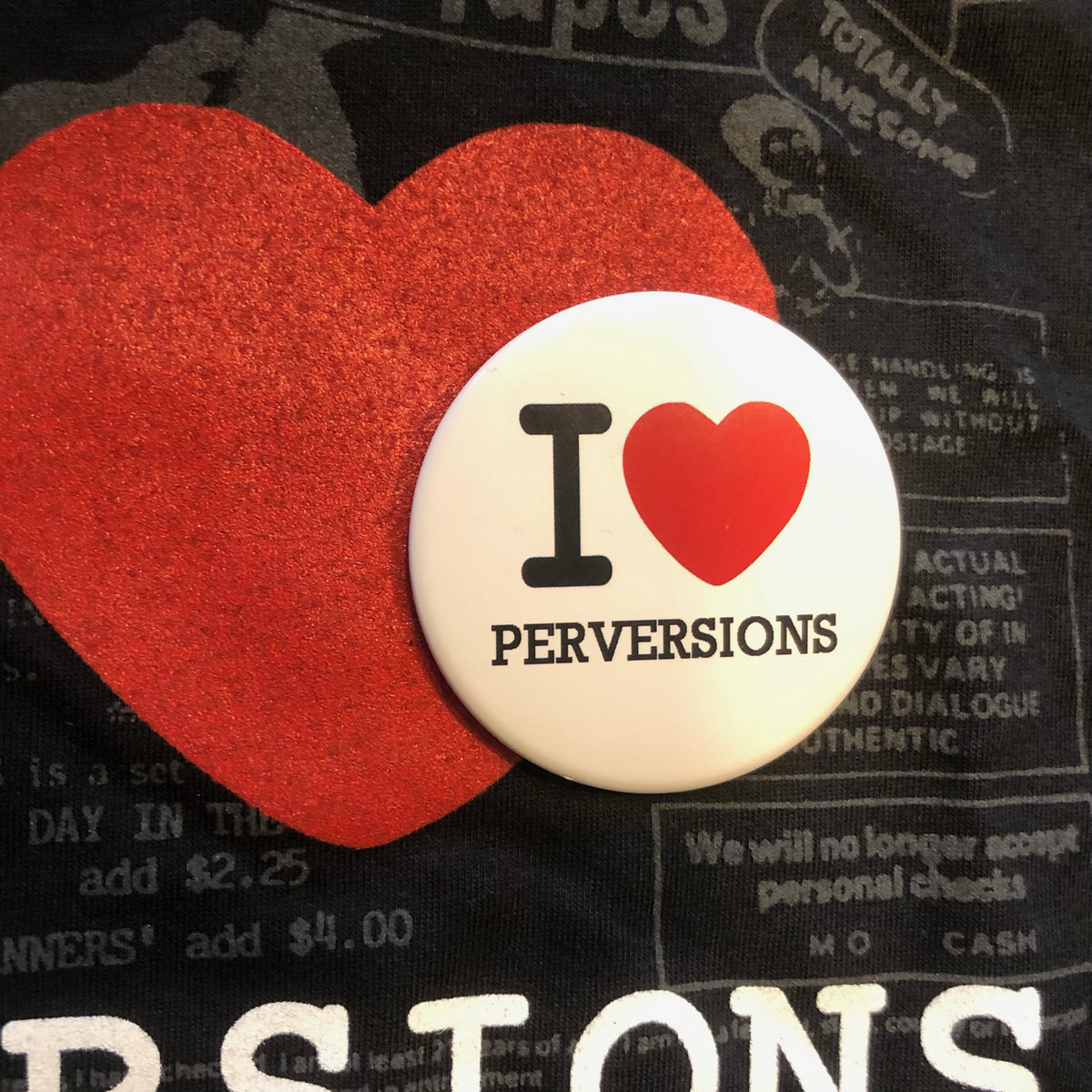 10 years ago we planned this, now 40 year old material, for a cassette-box release on the Malaysian Mirror Tapes, times went on and the label defunct. All that is left are the badges we made, in true 1980's style - "I Love Perversions". These now comes as a bonus with every vinylbox, ordered directly from the Brighter Death Now Bandcamp. Or also with the sweet t-shirt made to commemorate the lovely -80's.